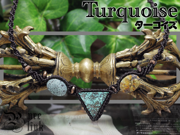 ★1点もの★『心と心を繋ぐ▲『ターコイズ・トルコ』マクラメ編ネックレス05 12月誕生石【ぴゅありんく】メンズ/レディース