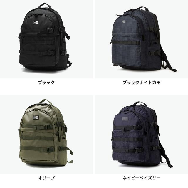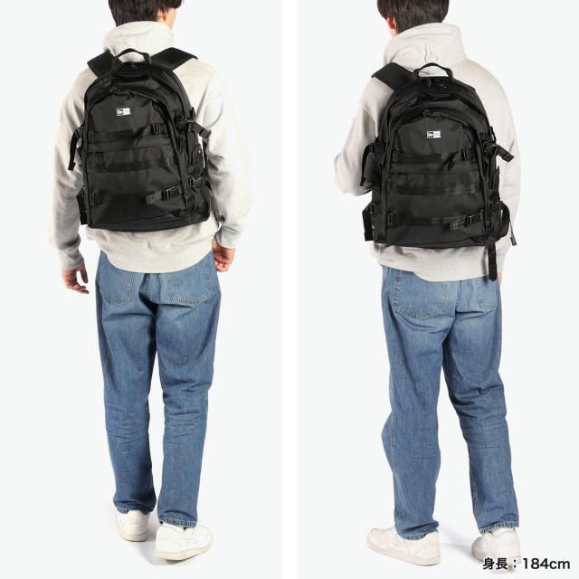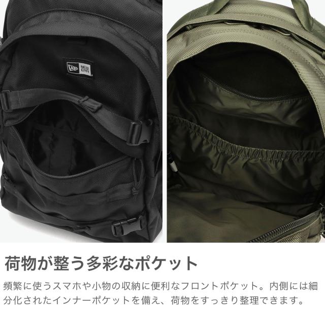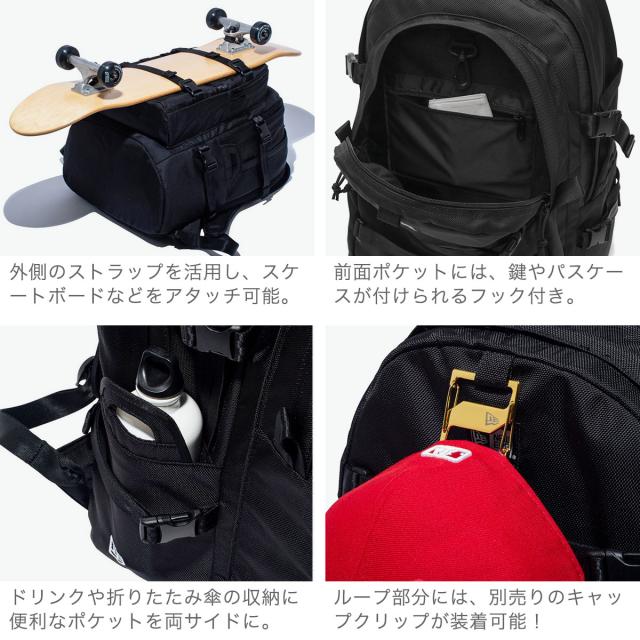 『NEW ERA』が展開するバックパックの中で最大の容量を誇るキャリアパック。メインルーム・PCポケット・前面に設けた大きめポケットに荷物を分けて収納できる便利なつくりです。大容量かつ実用性のあるデザインで、タウンユースのみならずアウトドアシーンでも活躍します。