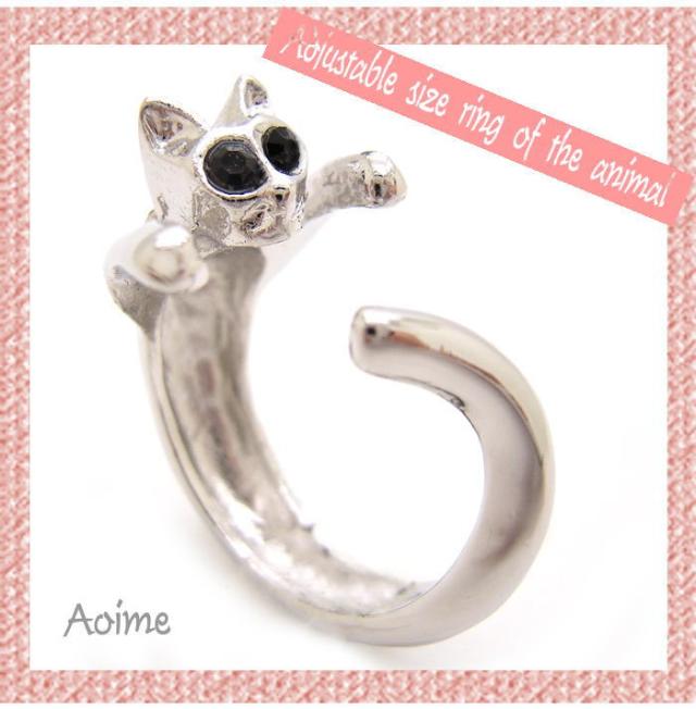 猫 ねこ ネコ リング フリーサイズ 指輪 キャット CAT アニマル アクセサリー ジュエリー レディース ラップリング