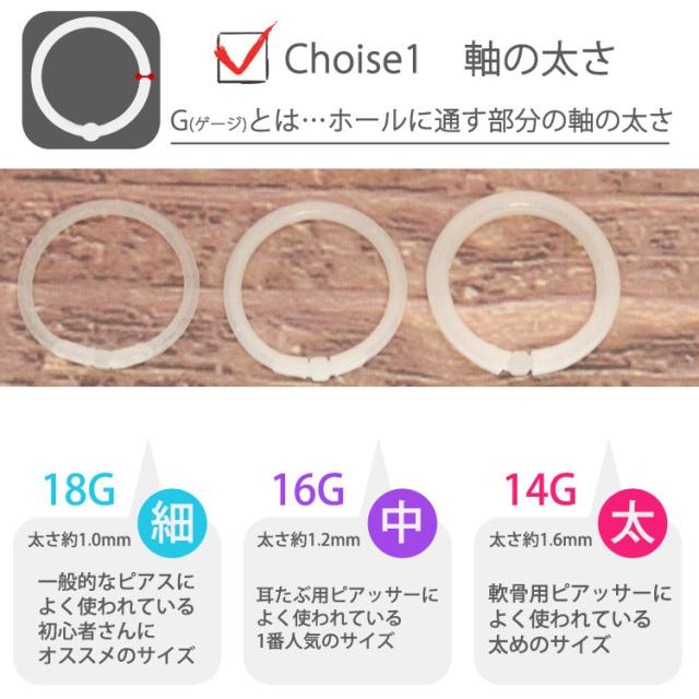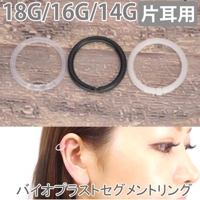 ボディピアス 1個売り 透明ピアス 外れにくい差し込み式バイオプラスト製セグメントリング 18G 16G 14G