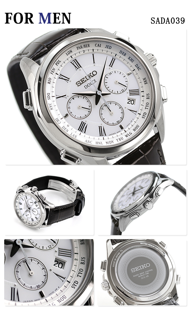正規品 7年保証キャンペーン 送料無料 ペアウォッチ pair-seiko8 ドルチェ&エクセリーヌは上品なドレスウォッチを展開するセイコーブランドです。スタイリッシュなデザインは、大切な人との時間を、自分らしさをスマートに演出します。 世界4エリアに対応したソーラー電波機能、ワールドタイム機能、クロノグラフ機能の3つを備えた多機能キャリバー「フライトエキスパート」モデル。「ハネムーンアゲイン」をコンセプトにしたモデルが登場。ボタンを押して都市名を選択するだけで、世界26都市の現地時間に合わせられるワールドタイム機能は、旅先でも便利にお使いいただける優れモノ。メンズ品番:SADA039 レディース品番:SWCW109