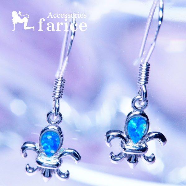 ブルーオパール装飾 フルールドリス(百合の花の紋章)デザイン メンズ&レディース シルバー925 アメリカンフック ピアス