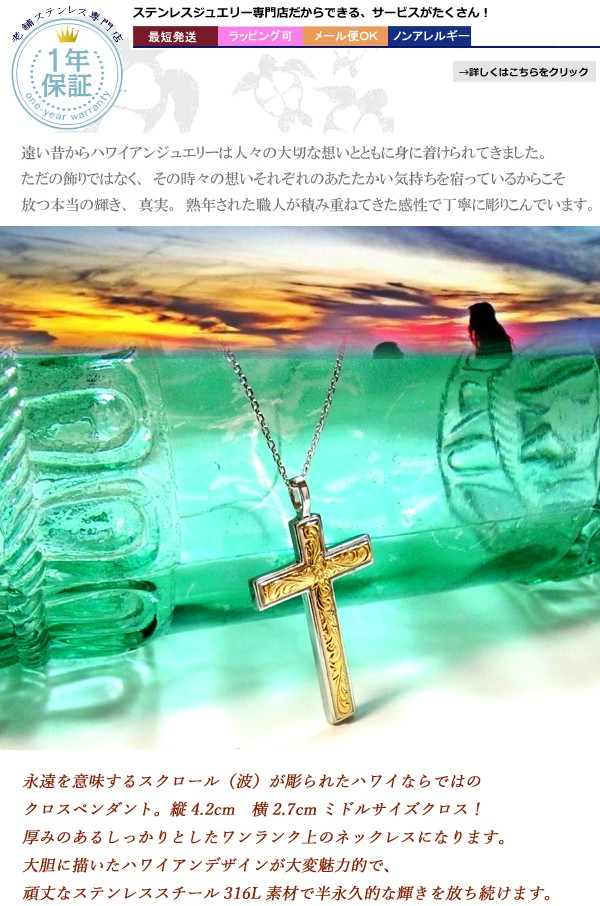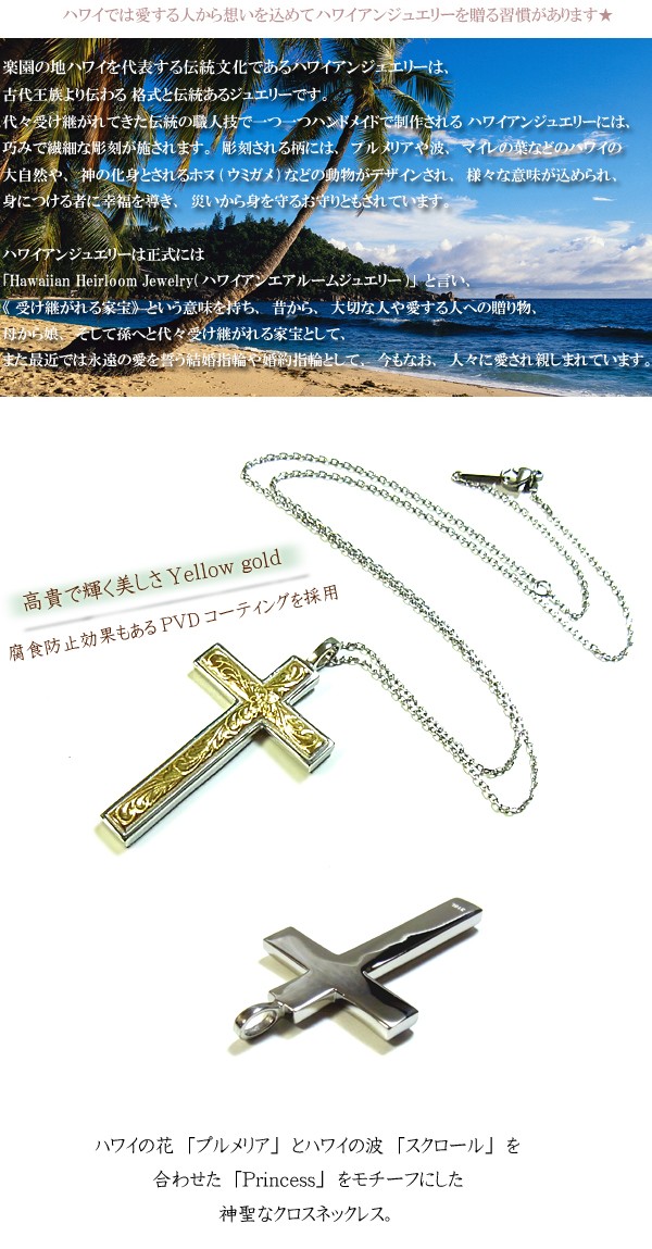 ハワイアンジュエリー クロスネックレス レディース メンズ ゴールド 記念日 クリスマス イエローゴールド ラッピング対応 アレルギー対応