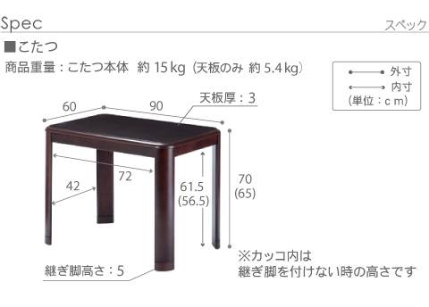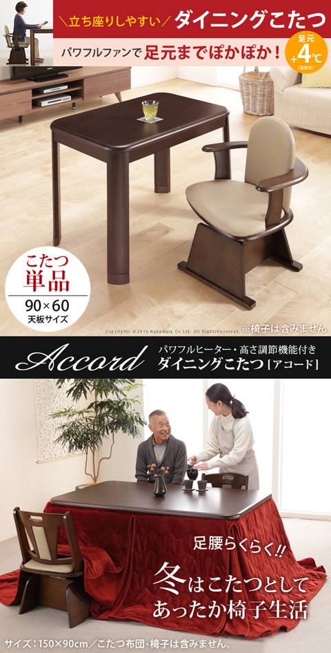 パワフルヒーター 高さ調節 機能付き ダイニングこたつ アコード 60×90cm こたつ本体のみ こたつ こたつテーブル 送料無料