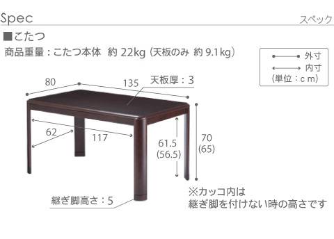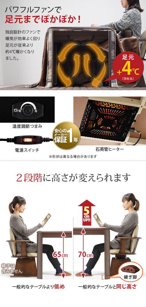 パワフルヒーター 高さ調節 機能付き ダイニングこたつ アコード 135×80cm こたつ本体のみ こたつ こたつテーブル 送料無料