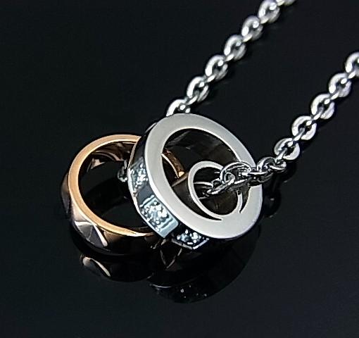 LION HEART/ライオンハート【ステンレスアクセ】レディース 2連リングトップ ステンレスネックレス ピンクゴールド 04N145SL(送料無料)