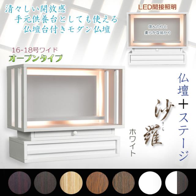 ホワイト モダン仏壇【LED間接照明・専用ステージ付:沙羅(さら)オープン型ワイド 16-18号】