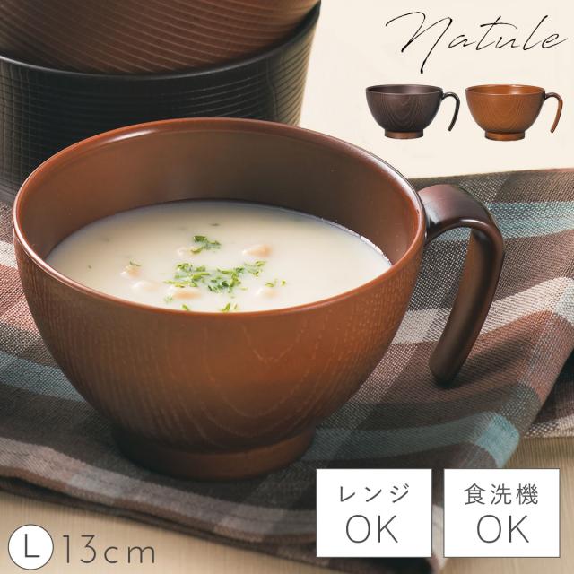 スープカップ 600ml 大きめ 取っ手付き お椀 汁椀 和食器 おしゃれ 食器 食洗機対応 レンジ 割れない 軽い 木目 Natule レンジ手付木目椀 L ナチュール BPAフリー 割れない食器