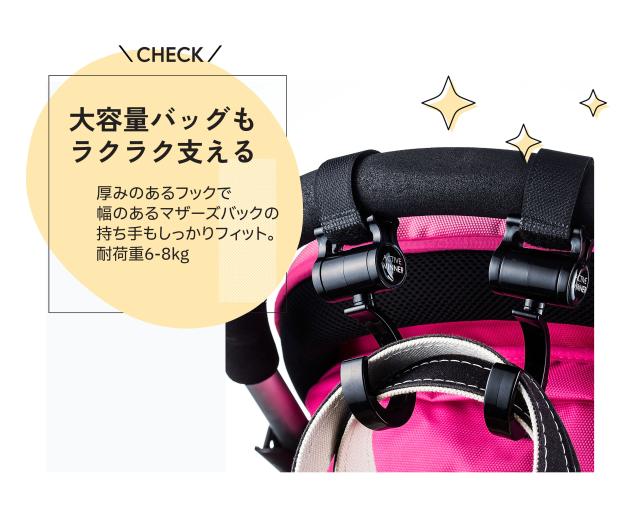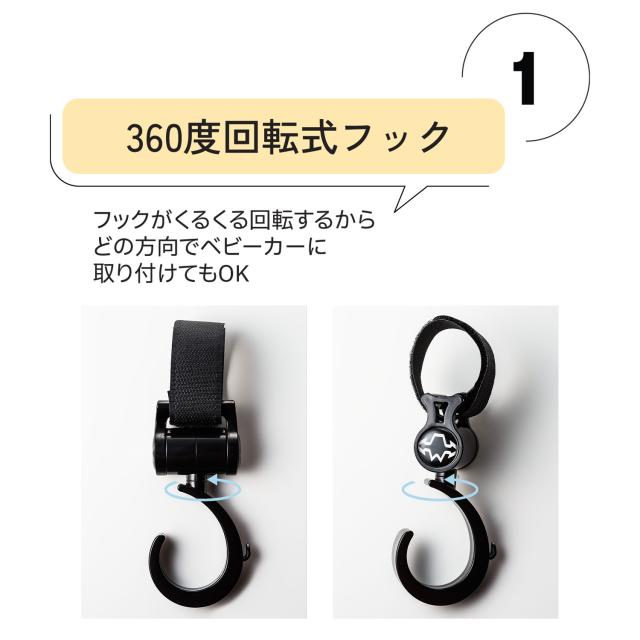 ACTIVE WINNER ベビーカーフック 360度回転式 ベビーカー 荷物フック 幅広フック ベビーカー用フック