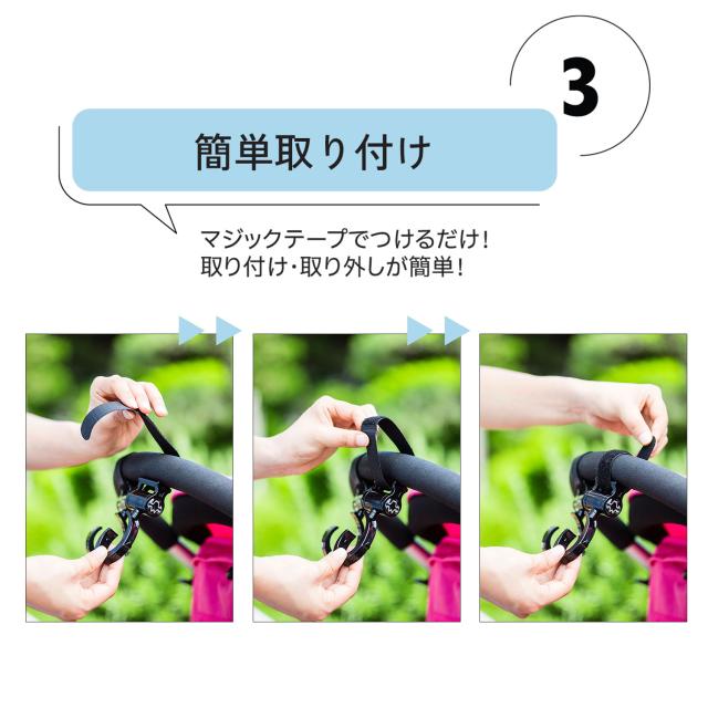 ◆ベビーカー以外にも自転車のハンドル、スーツケースなどにも使用可能!