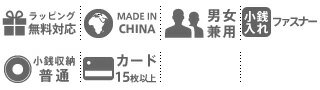 | 備考 | 【メイン開閉】オープン 内側/ 小銭入れ×1 札入れ×1 カードポケット×16 フリーポケット×3 | ||
