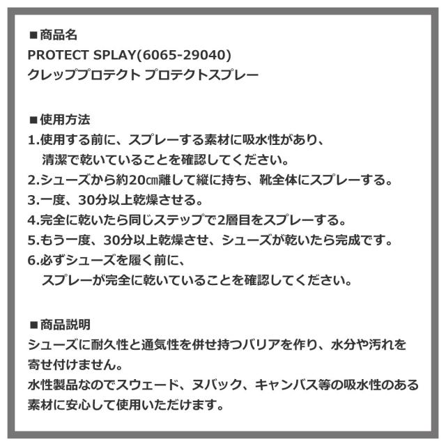 クレップ 防水スプレー クレッププロテクト 防水用品 CREP PROTECT 送料無料 正規品 靴 シューケア 防水 スプレー 疎水性防水スプレー PROTECT SPLAY 200ml 6065-29040 スニーカー芸人 テレビ 紹介 日本製 3/15 プレゼン ZIPで紹介 三代目 山下健二郎 愛用