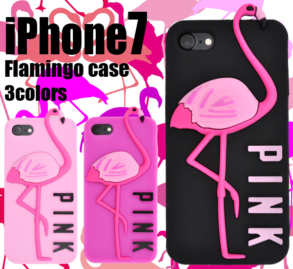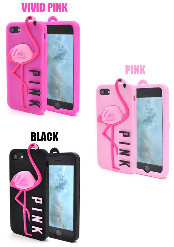 スマホケース iPhone8 iPhone7 iPhoneSE(第2世代 / 第3世代)SE2 SE3 第二世代 第三世代 かわいいフラミンゴケース アイフォン用シリコンケース 保護カバー PINKロゴ入り