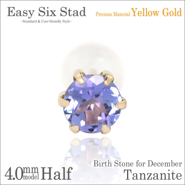 タンザナイト ピアス 送料無料 K10 イエローゴールド 4mm 薄型6本爪 スタッド 片耳単品
