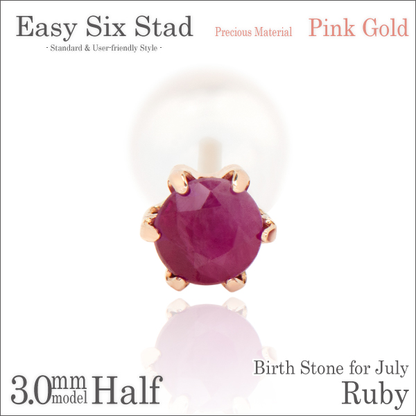 ルビー ピアス 送料無料 K10 ピンクゴールド 3mm 薄型6本爪 スタッド 片耳単品 ダブルロックキャッチ付