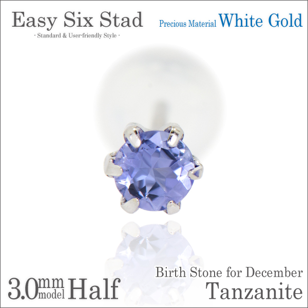 タンザナイト ピアス 送料無料 K10 ホワイトゴールド 3mm 薄型6本爪 スタッド 片耳単品 ダブルロックキャッチ付