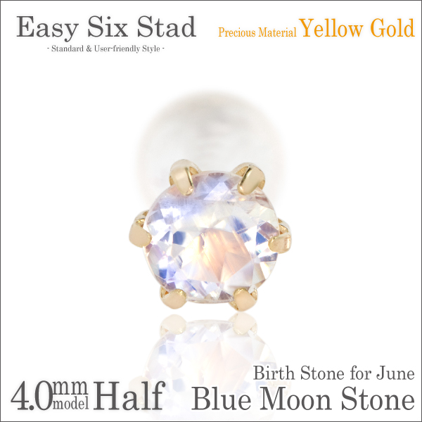 ブルームーンストーン ピアス 送料無料 K10 イエローゴールド 4mm 薄型6本爪 スタッド 片耳単品 ダブルロックキャッチ付