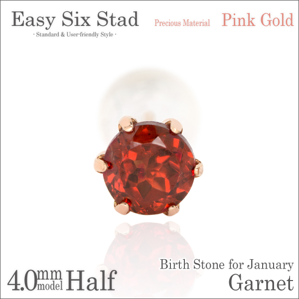 ガーネット ピアス 送料無料 K10 ピンクゴールド 4mm 薄型6本爪 スタッド 片耳単品 ダブルロックキャッチ付