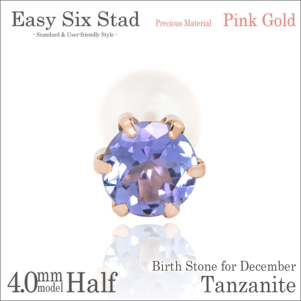 タンザナイト ピアス 送料無料 K10 ピンクゴールド 4mm 薄型6本爪 スタッド 片耳単品 ダブルロックキャッチ付