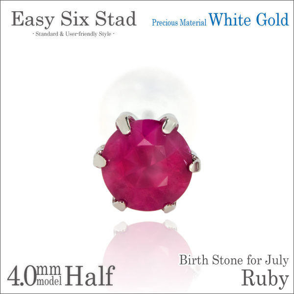 ルビー ピアス 送料無料 K10 ホワイトゴールド 4mm 薄型6本爪 スタッド 片耳単品 ダブルロックキャッチ付