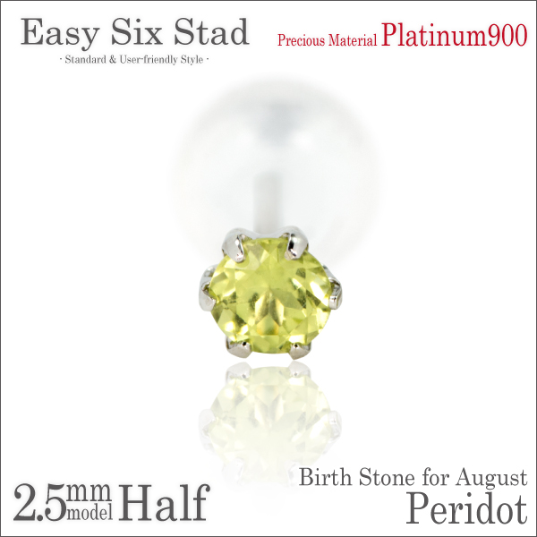 ペリドット ピアス 送料無料 Pt900プラチナ 2.5mm 薄型6本爪 スタッド 片耳単品 ダブルロックキャッチ付