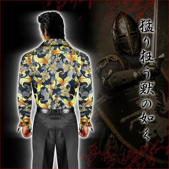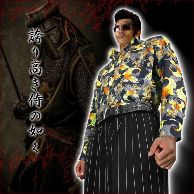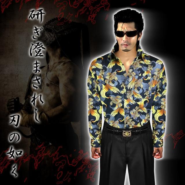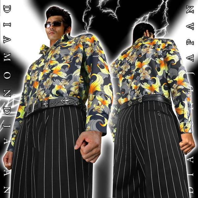 ■カラー:金魚ruffian brawler Criminal Gang Gangsta Outlaw Bad boy Patriot Hooligan Yankee Japanese JPN送料無料/ポイント2倍■dj-038■ヤクザ&アウトローブランド -DIAMOND JAPAN- ダイヤモンドジャパン 長袖 Yシャツ ドレスシャツ スーツ 普通襟 オラオラ系 悪羅悪羅系 ヤクザ ヤンキー オラオラ 悪羅悪羅 メンズ 金魚 総柄 半グレ ヤカラグ 輩ラグヤンキーチンピラ不良暴走族右翼チャンプロード ドキュメント 雑誌掲載 服