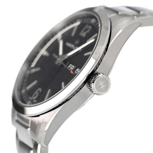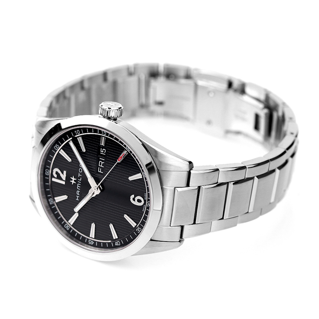 3年保証キャンペーン ハミルトン ブロードウェイ デイデイト クオーツ 40MM スイス製 メンズ 腕時計 H43311135 HAMILTON BROADWAY DAY DATE QUARTZ 40MM アナログ ブラック ◆HAMILTON(ハミルトン)はアメリカ発祥の老舗ブランドです。創業翌年に誕生した懐中時計「ブロードウェイ・リミテッド」は、他の時計よりも正確に時を刻むことから鉄道用時計として採用されました。その後も航空用時計や軍用時計として採用されるなど、品質の高さと流行にながされない独自のデザインが世界中の人々に支持されています。 ハミルトン創業と同時期に誕生し、ともにアメリカで歳月を重ねてきた『ジャズ・ミュージック』にインスパイアされ、誕生したモデル。12時位置に配置されたブランドロゴがポイント。オン・オフの充実した時を過ごす大人のスタイリッシュなタイムピースです。 機械式腕時計