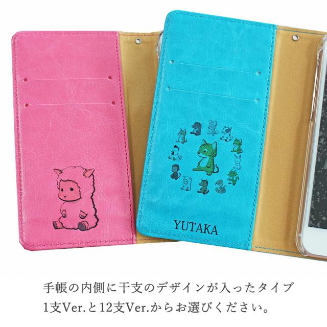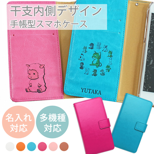 スマホケース 名入れ対応 干支 12干支 手帳型ケース 内側デザイン かわいい スマホカバー iPhone17 iPhone16e iPhone15 Xperia 10VII AQUOS sense9 sense8 Galaxy S25 A54 arrowsWe2 OPPO Reno7A BASIO active3 グーグルピクセル9a Pixel8a 送料無料 多機種対応
