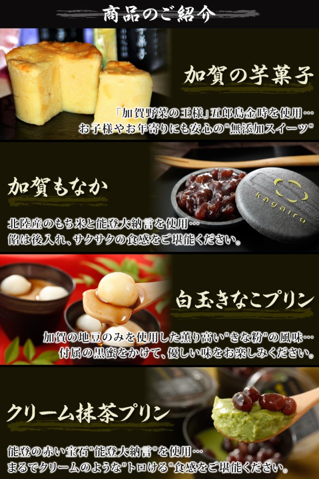 お年賀にも人気♪ ギフト スイーツ スイートポテト5個と加賀もなか4個と加賀プリン4個set cool 内祝い