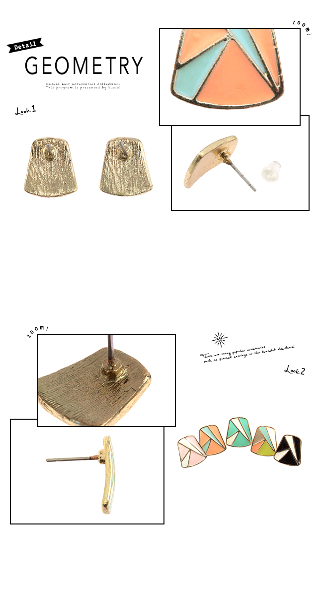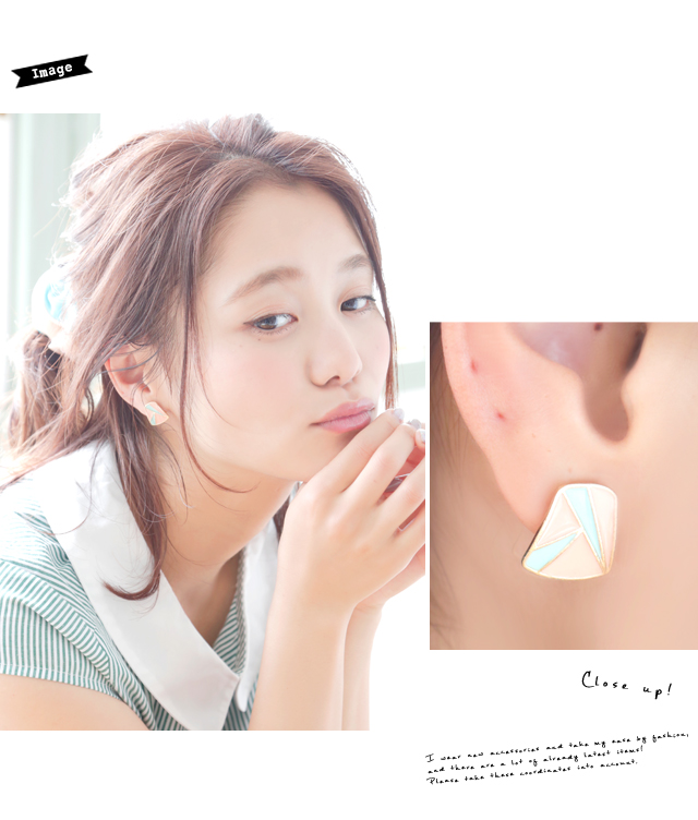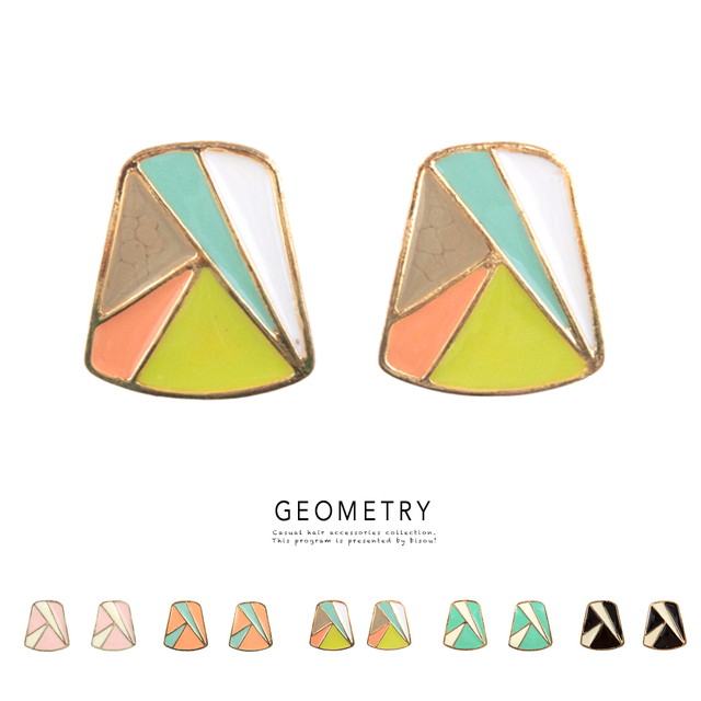 【バイカラーがおしゃれな小さめピアス】スタッドピアス/幾何学模様/マルチカラー/レトロ/耳飾り/アクセサリー