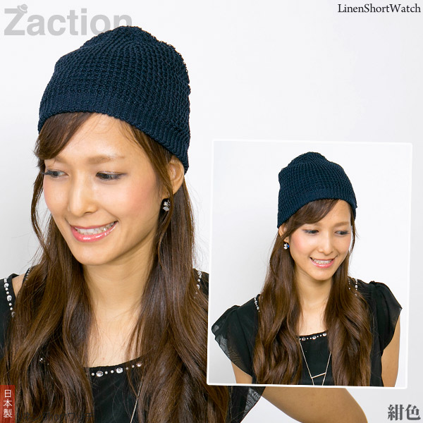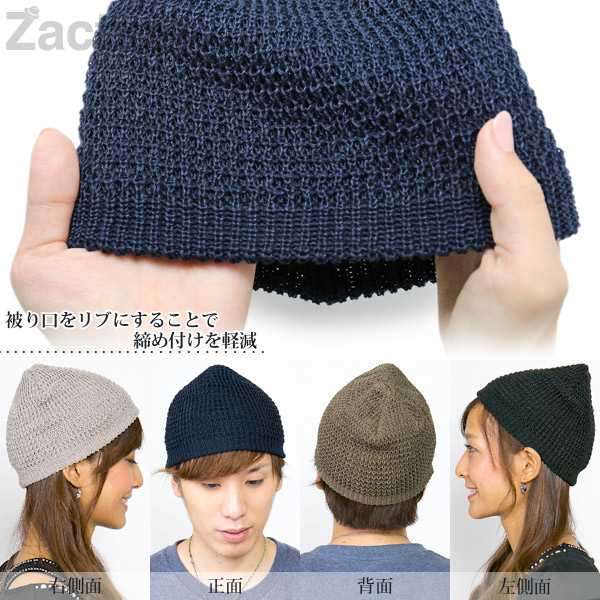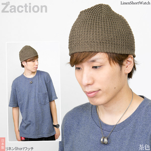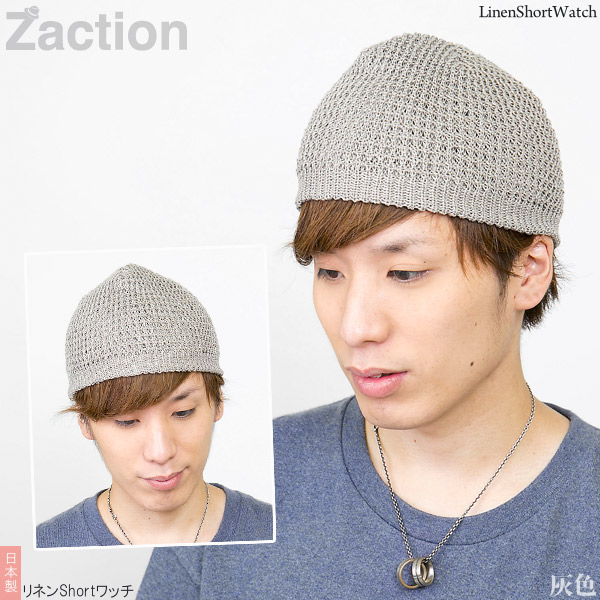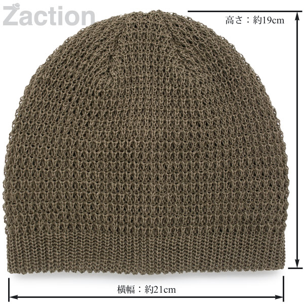 通気性があり爽やかな被り心地を与えてくれる春夏の季節に最適な麻100%の日本製ビーニーワッチがZactionオリジナルで完成しました。麻の繊維は、天然繊維の中でもっとも涼しい繊維といわれ、水分の吸湿や発散性の高さと通気性の良さによる清涼感がとても良いのが特徴です。また、シャリ感と上品な光沢があるのも魅力の1つです。さらにメッシュ編みの製品なので風通しが抜群で、夏でも爽やかに被りやすいショートタイプのニット帽です。被り口をリブにすることで締め付けを軽減、伸縮性があり女性でも男性でも気負わずラフに被れますよ。