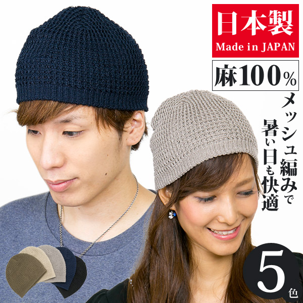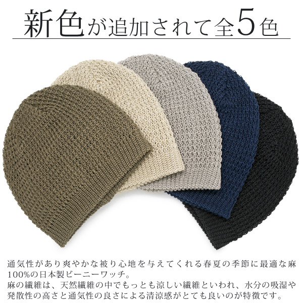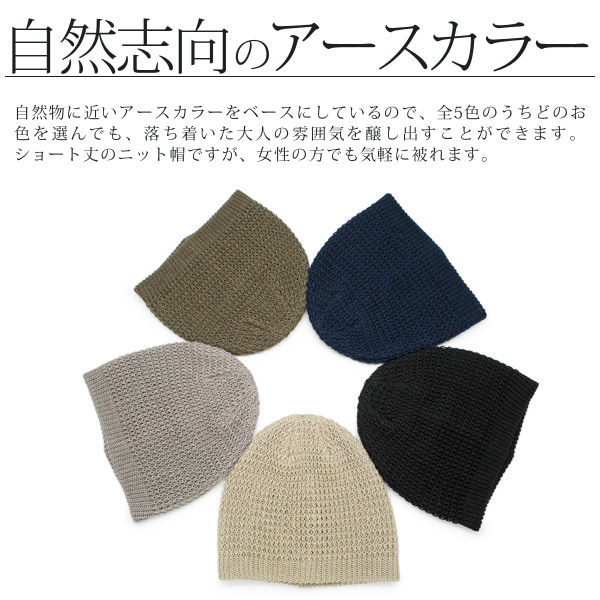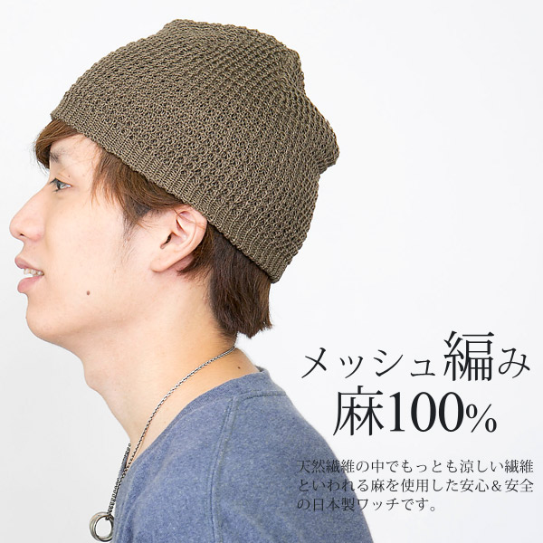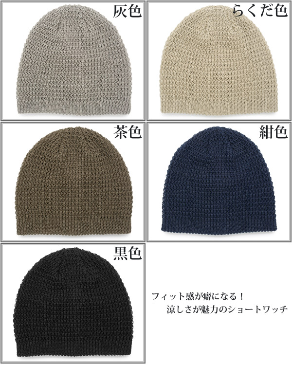 ニット帽 春夏 [メール便可] 帽子 メンズ レディース ニットキャップ 麻 日本製 メッシュ / リネンShortワッチ