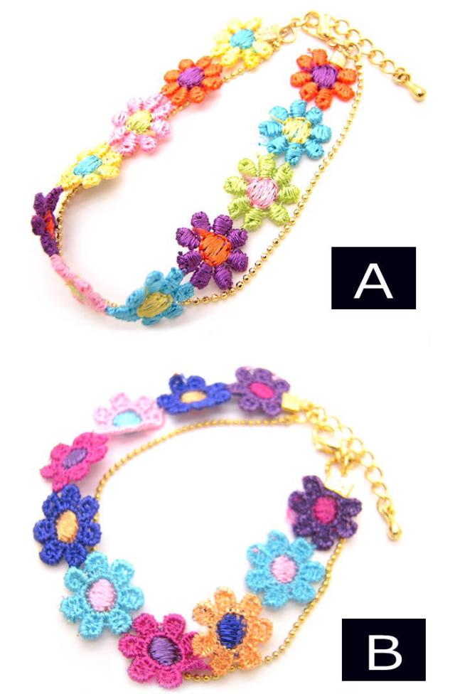 花 ブレスレット レディース アクセサリー 刺繍 レース フラワー ブレス ゴールドチェーン フリーサイズ 3-5799