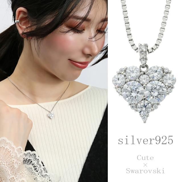 スワロフスキージルコニア ハート シルバー ネックレス ペンダント スワロフスキー ジルコニア ハート型 パヴェ シルバーネックレス レディース 女性