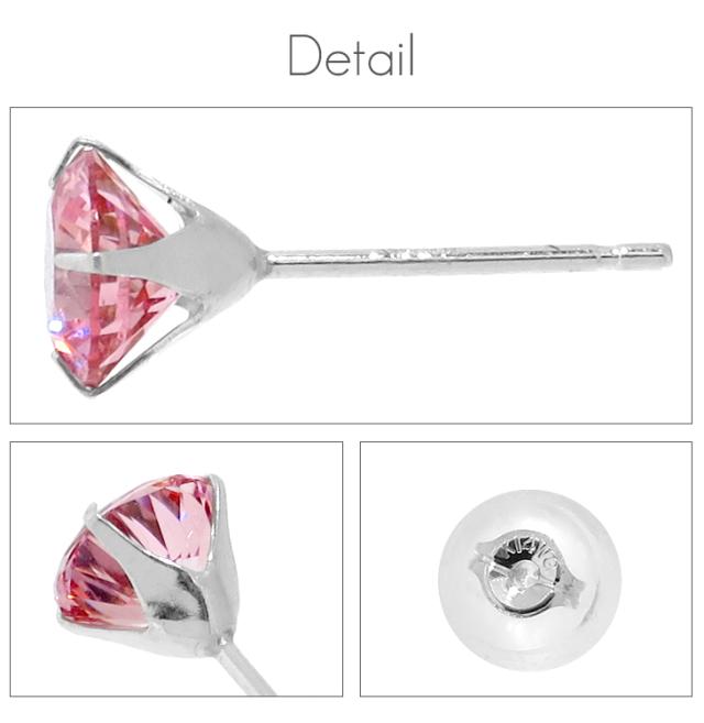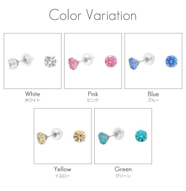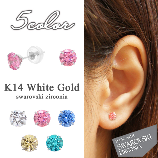 K14WG 5mm 選べる5色 スワロフスキージルコニア一粒シンプルスタッズピアス(2P両耳)14金/ゴールド/レディース/ピアス/両耳
