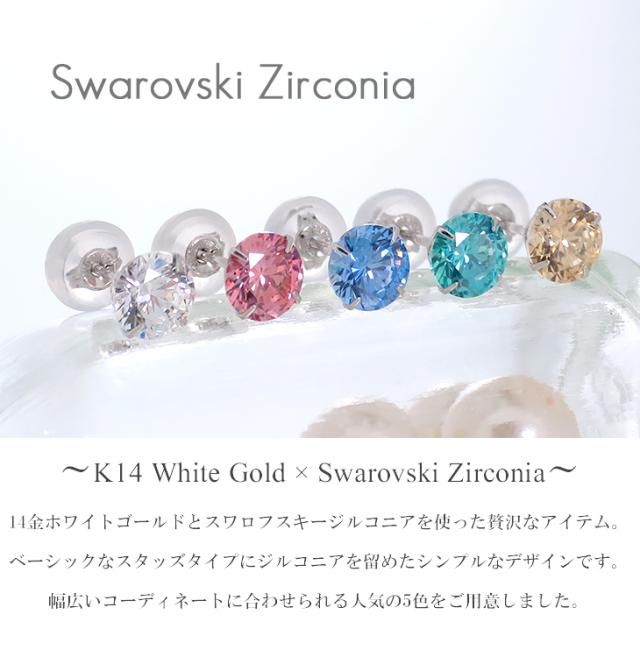 K14WG 14金 ホワイト ゴールド スワロフスキー キュービックジルコニア 5mm 誕生石 選べる 5色