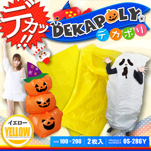 【2枚入り】デカポリ 大判カラービニール袋 200X100cm (OS-286Y) イエロー イベント レジャー 収納・保管 防災グッズ【メール便OK】