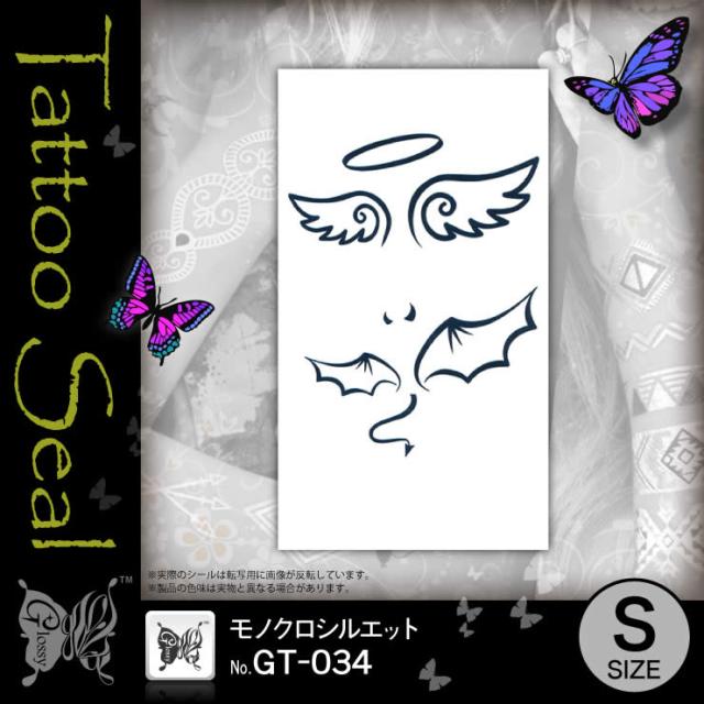ウイング 『タトゥーシール モノクロシルエット (GT-034)』 水だけでカンタン転写 長持ち一週間 簡単に消せる刺青 【メール便OK】