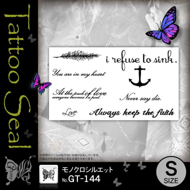 フォント 『タトゥーシール モノクロシルエット (GT-144)』 水だけでカンタン転写 長持ち一週間 簡単に消せる刺青 【メール便OK】