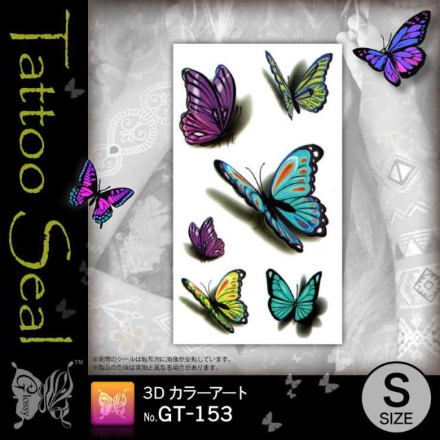 蝶『タトゥーシールカラーアート(GT-153)』水だけでカンタン転写 長持ち一週間 簡単に消せる刺青【メール便OK】