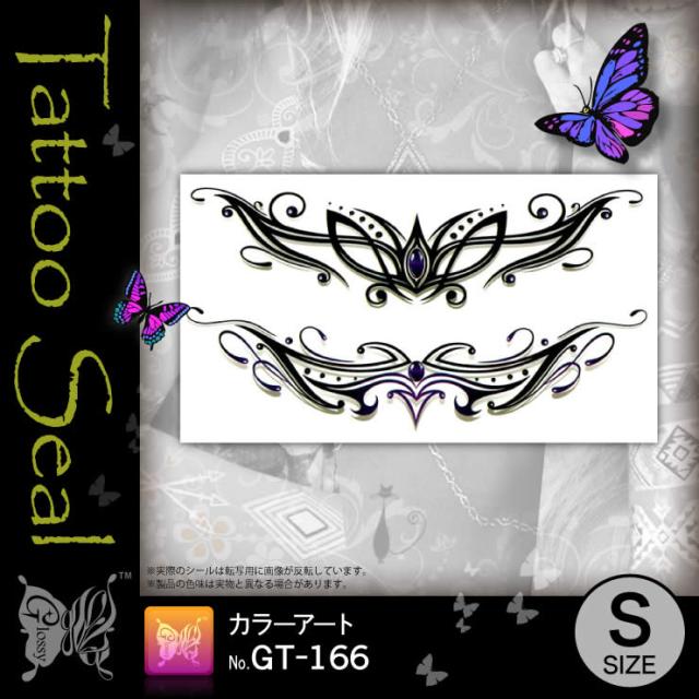 カリグラフィー『タトゥーシールカラーアート(GT-166)』水だけでカンタン転写 長持ち一週間 簡単に消せる刺青【メール便OK】