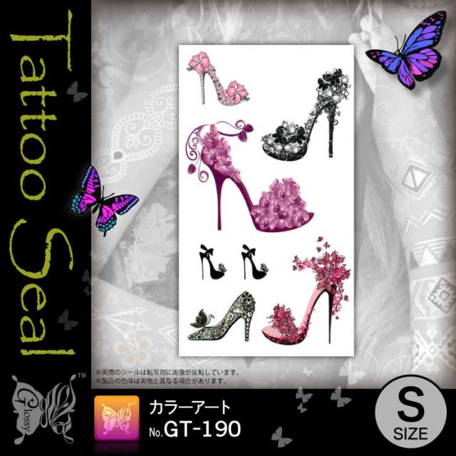 ハイヒール『タトゥーシールカラーアート(GT-190)』水だけでカンタン転写 長持ち一週間 簡単に消せる刺青【メール便OK】
