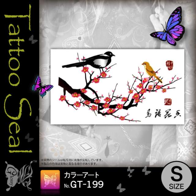 鳥と梅『タトゥーシールカラーアート(GT-199)』水だけでカンタン転写 長持ち一週間 簡単に消せる刺青【メール便OK】