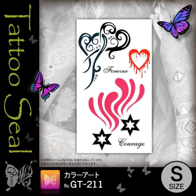 ハート『タトゥーシールカラーアート(GT-211)』水だけでカンタン転写 長持ち一週間 簡単に消せる刺青【メール便OK】