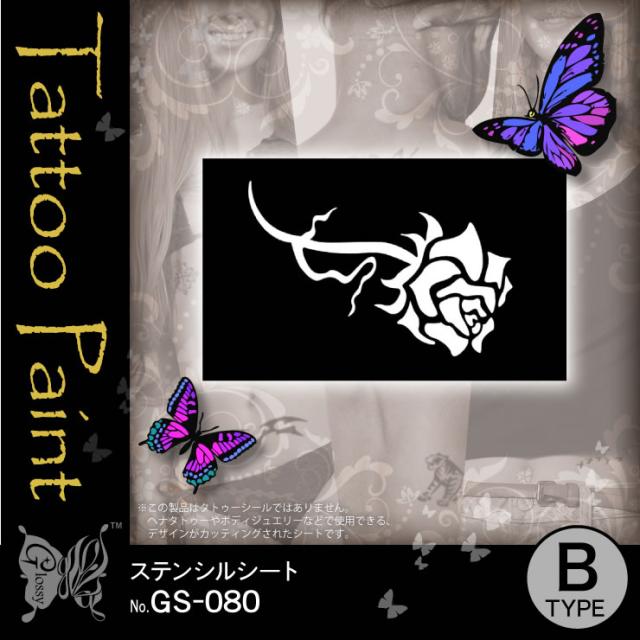 ローズ 『ステンシルシート (GS-080)』ダイヤモンドタトゥーやヘナタトゥー用のデザインシート【メール便OK】