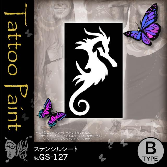 タツノオトシゴ 『ステンシルシート (GS-127)』ダイヤモンドタトゥーやヘナタトゥー用のデザインシート【メール便OK】