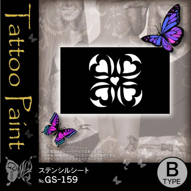 ハート 『ステンシルシート (GS-159)』ダイヤモンドタトゥーやヘナタトゥー用のデザインシート【メール便OK】