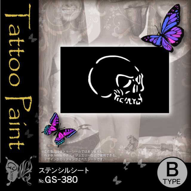 スカル 『ステンシルシート (GS-380)』ダイヤモンドタトゥーやヘナタトゥー用のデザインシート【メール便OK】