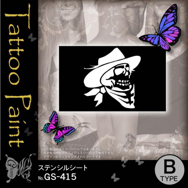 スカル 『ステンシルシート (GS-415)』ダイヤモンドタトゥーやヘナタトゥー用のデザインシート【メール便OK】
