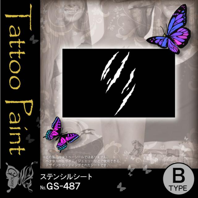 爪跡 『ステンシルシート (GS-487)』ダイヤモンドタトゥーやヘナタトゥー用のデザインシート【メール便OK】